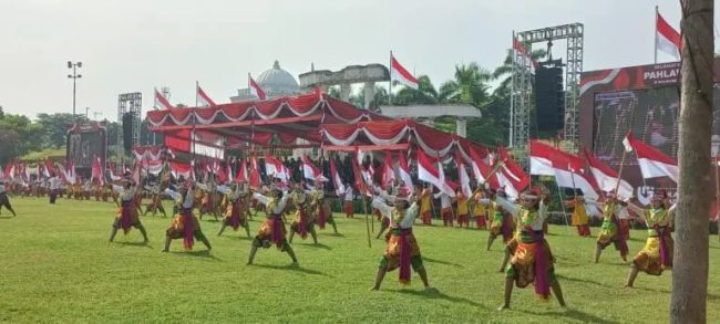 Sebelum upacara dimulai sekitar pukul 08.00 WIB, pagi ada penampilan tari kolosal yang dipersembahkan “Tari Laskar Surabaya”.