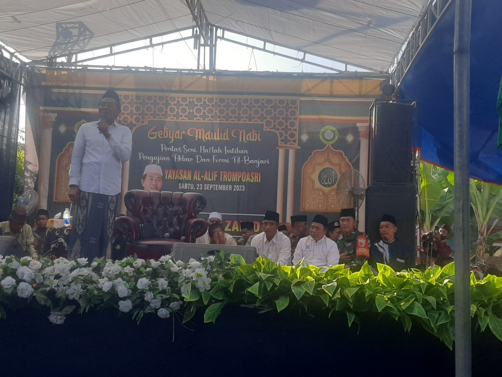 Sidoarjo~www.pilarcakrawala.news|Terlihat beberapa orang memadati lapangan dalam Pengajian di desa TPQ yayasan Al Alif lebih tepatnya di dusun Tromposari kulon kecamatan Jabon bertema pembentukan akhlak di hadiri tokoh masyarakat dan Forpincam Jabon Sabtu,24 September 2023.