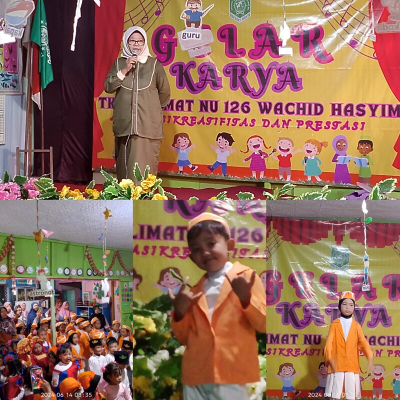 Sidoarjo~www.pilarcakrawala.news|Hari ini menjadi momen istimewa bagi Taman kanak-kanak Muslimat Nahdlatul Ulama ( TKM NU) 126 Wachid Hasyim dan Kelompok Bermain ( KB) Wahid Hasyim. Mereka menggelar acara “Pentas Gelar karya” yang bertujuan untuk mengapresiasi kreativitas dan prestasi para siswa.