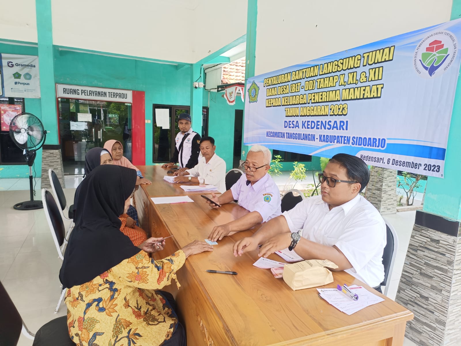 Pemerintah Desa Kedensari menyalurkan Bantuan Langsung Tunai Dana Desa (BLT-DD) untuk Bulan Oktober,November & Desember tahun 2023 yang dilaksanakan di pendopo desa Kedensari Kec. Tanggulangin, Kab. Sidoarjo Rabu,(06/12/2023).