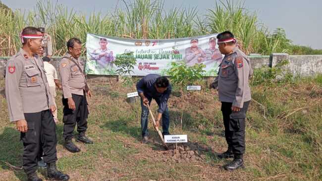 Sidoarjo~www.pilarcakrawala.news|Memperingati kemerdekaan Republik Indonesia yang ke 78. Polsek Tulangan mengadakan bakti sosial dengan penanaman bibit pohon kelengkeng.