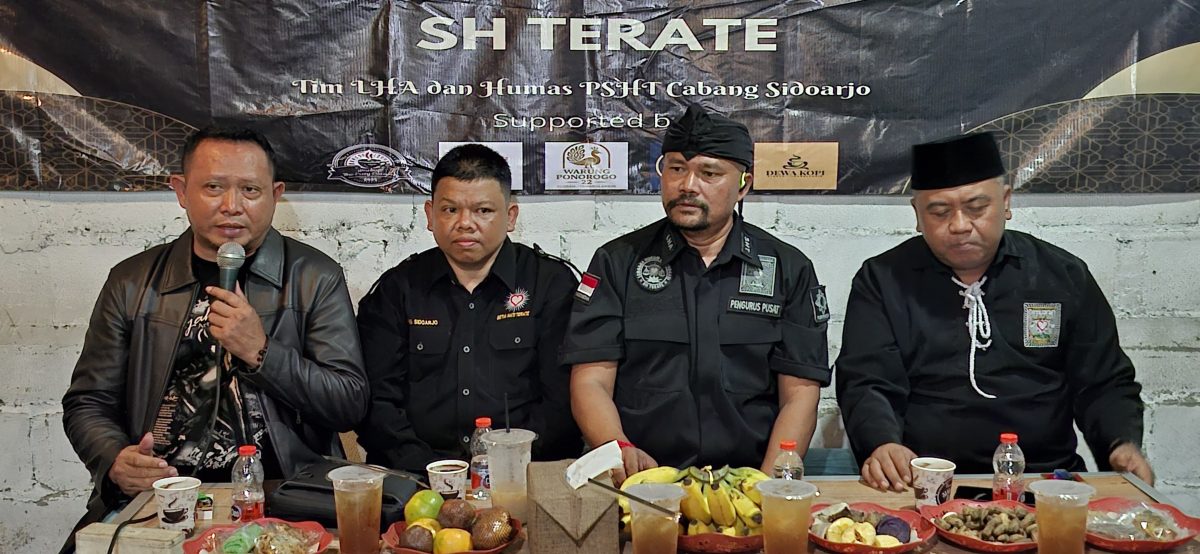 Sidoarjo//www.PilarCakrawala.news| Persaudaraan Setia Hati Terate (PSHT) Ranting Tanggulangin menggelar diskusi hukum dan kehumasan yang berlangsung di Haul Warkop 84, Desa Putat, pada Malam Minggu (6/12). Kegiatan ini dihadiri jajaran dewan perwakilan PSHT Cabang Sidoarjo Pusat Madiun, tim Lembaga Hukum dan Advokasi (LHA) PSHT Cabang Sidoarjo serta perwakilan LHA Pusat Madiun, tim bidang Humas PSHT Cabang Sidoarjo Pusat Madiun, serta sejumlah warga PSHT Ranting Tanggulangin.