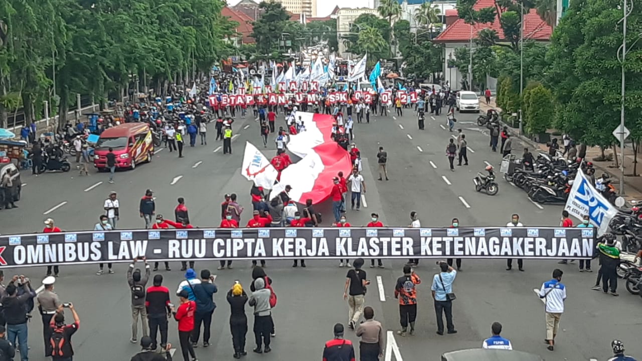 Persatuan Pekerja Buruh Sidoarjo (PPBS) Melakukan Aksi Unjuk Rasa Damai Dalam Mengawal Kenaikan UMK Dan UMSK Tahun 2021 Serta Menolak OMNIBUS LAW