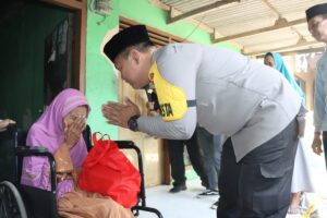 Selain berikan semen, Polresta Sidoarjo juga berikan kitab Al Qur’an dan menyediakan layanan kesehatan gratis serta pembagian bantuan paket sembako secara door to door ke warga setempat.