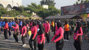 Olahraga bersama HUT Polwan ke-75, tidak hanya diikuti Kapolresta Sidoarjo beserta pejabat utama, kapolsek jajaran, anggota saja, namun juga diikuti Bhayangkari Cabang Kota Sidoarjo, anggota KOWAD, Satpol PP, pegawai wanita instansi terkait dan ASN.