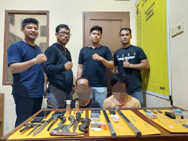 Dari tangan Ketiga tersangka yakni RS, AP dan MS, Petugas mengamankan beberapa paket narkotika jenis sabu berikut dengan timbangan digital dan beberapa jenis senjata tajam.