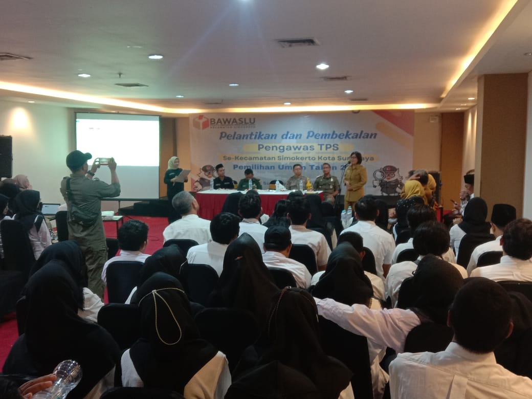 Camat simokerto dalam sambutannya menyampaikan kepada Petugas Pengawas Pemilu 2024 yang sudah dilantik ini agar betul – betul menjalankan tugas nya dengan penuh tanggung jawab dan sebaik-baiknya .