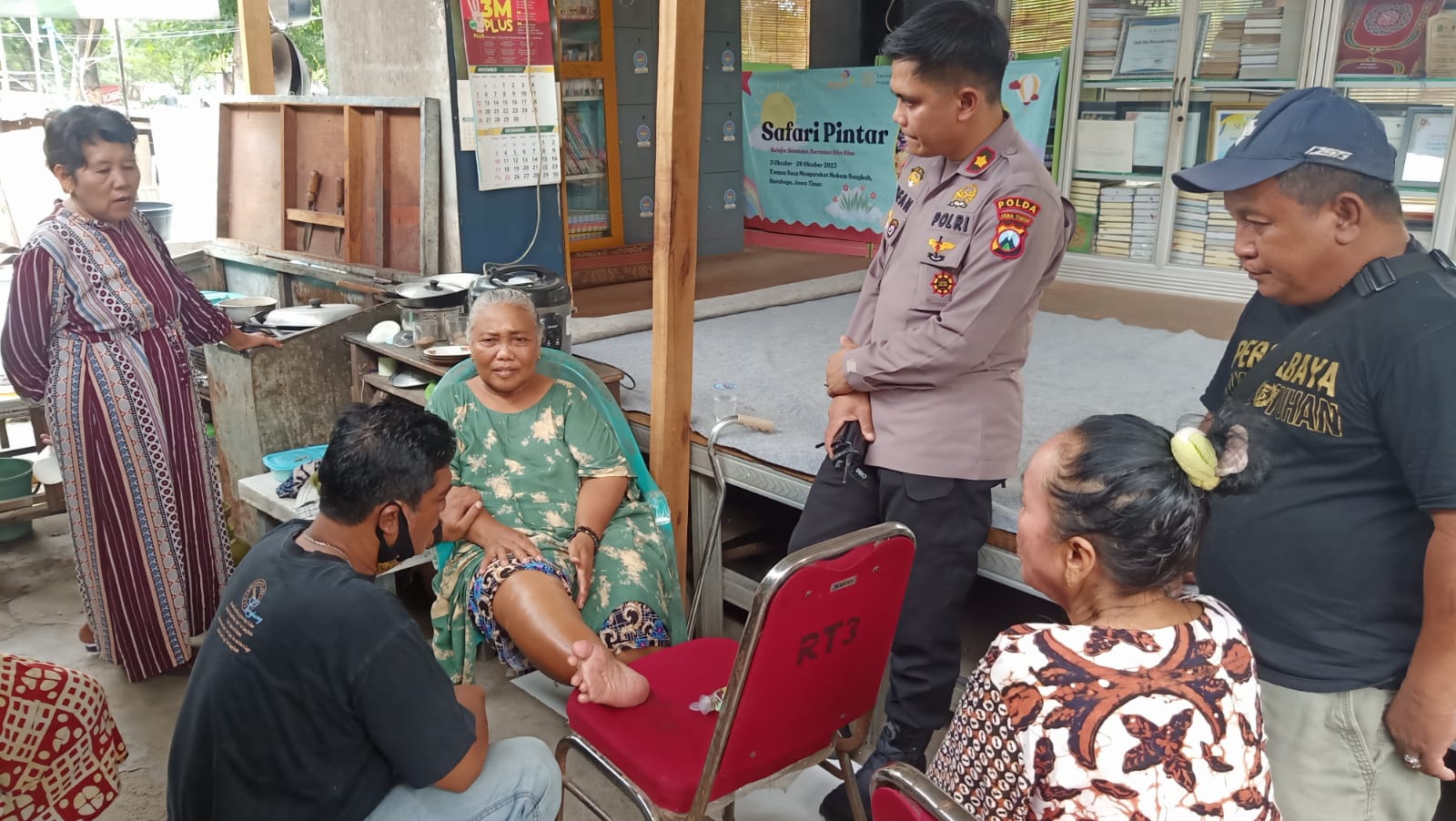 Supinah (56) warga Sidoyoso kali selatan yang merasakan sakit mendapatkan tindakan pengobatan dari salah satu anggota Polsek Simokerto Aiptu Budi berupa pijat refleksi dan selain ibu Supinah ada juga Mustika (66 ), Ina ,(63) ,Salmi ,(68) , Sumbriah ,(56 ), Muayana (55) , Ida (66) ,Munziah (70)semua secara bergantian di tangani oleh Aiptu Budi, tanpa lama langsung bergantian dipijat kaki dan punggungnya sesuai penyakit yang diderita nya.