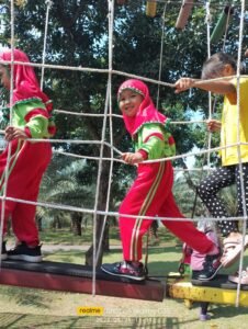 POTRET KESERUHAN ANAK TK/PG WACHID HASYIM DESA TULANGAN WISATA OUTBOUND DI KEBUN KURMA