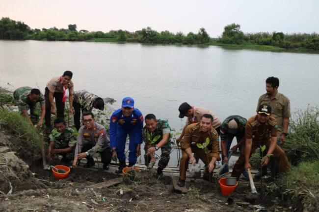 Sidoarjo~www.pilarcakrawala.news|Kodim 0816/Sidoarjo bersama BPDASHL Brantas dan Forkopimka Kec. Jabon Sidoarjo melaksanakan puncak penanaman mangrove nasional yang bertempat di wisata bahari tlocor Desa Kedungpandan Kecamatan Jabon Kab. Sidoarjo. Senin, 15/5/2023.