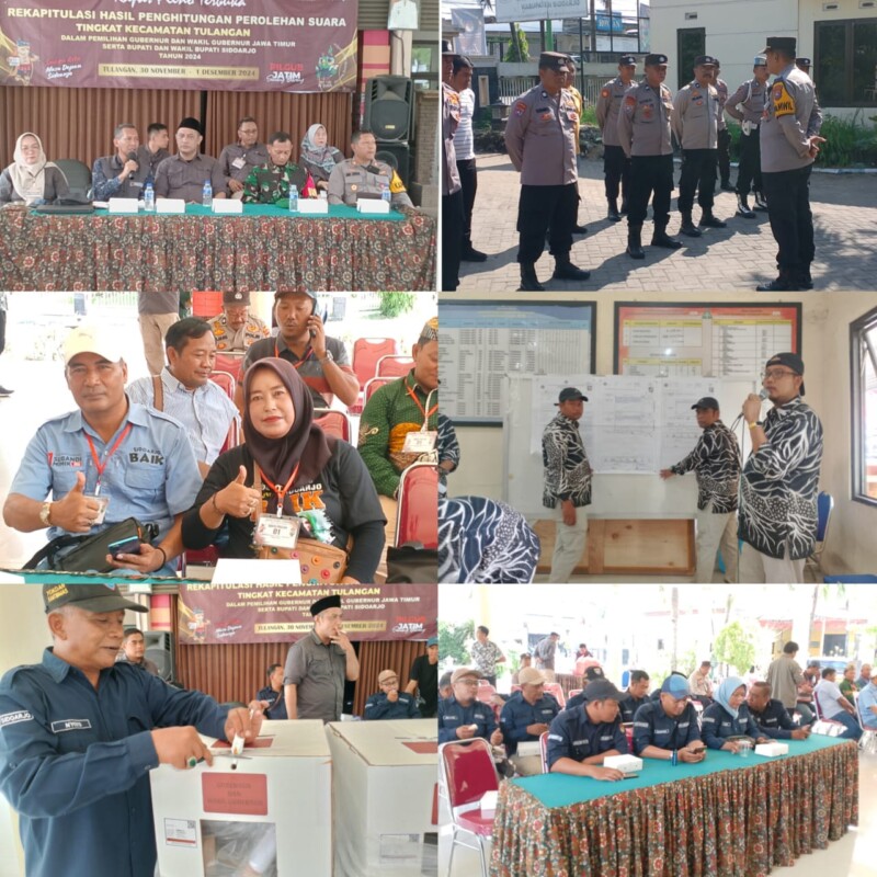 Kapolsek Tulangan, AKP Abdul Collil, S.H., hadir bersama jajaran anggotanya untuk memastikan keamanan berlangsung optimal. Begitu pula Danramil Tulangan, Kapten Arh Aan Chunaidi, yang turut hadir dengan sejumlah anggota TNI. Kehadiran aparat kepolisian dan TNI ini menunjukkan komitmen penuh dalam menjaga kondusivitas selama proses rekapitulasi berlangsung.