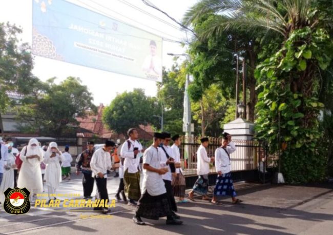 Sejak pagi suasana khidmat sudah terlihat di halaman Taman Surya Balai Kota. Ratusan santri terus bergantian datang memasuki halaman tempat upacara digelar.