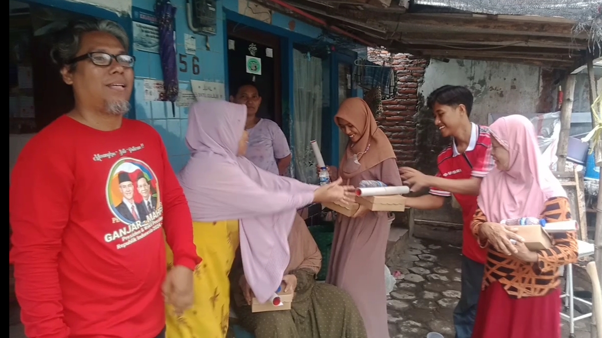 Relawan Pertiwi Nusantara bersatu yang dipimpin langsung oleh ketua umum Hajjah Sri Setyo Pertiwi ini, memberikan ratusan paket nasi kotak beserta APK pilpres, seperti kalender, sticker dan kaos bergambar calon presiden dan wakil presiden Ganjar Pranowo dan Mahfud MD. Jum’at 15/12/2023.