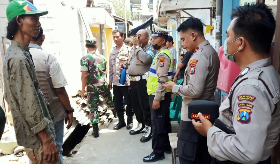 kapolsek simokerto kompol mohammad irfan beserta anggota Polsek Simokerto yang menerima laporan atas penemuan barang yang di duga granat dengan sigap mendatangi tempat kejadian.
