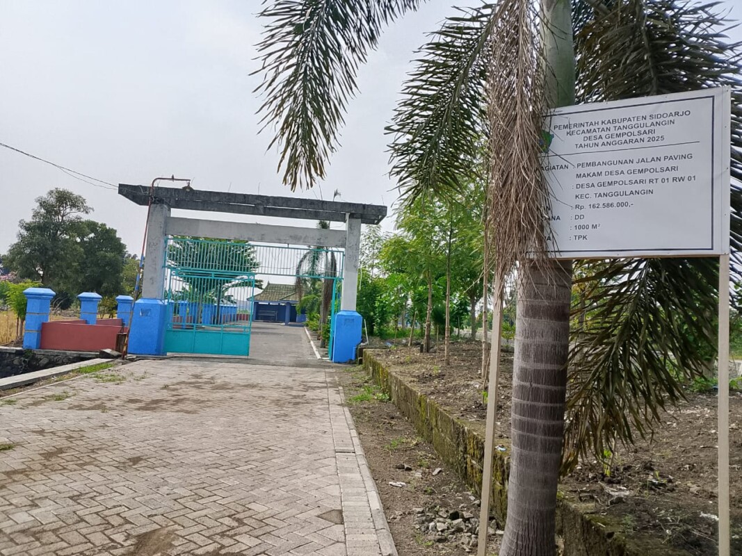 SIDOARJO~www.pilarcakrawala.news|Peningkatan fasilitas untuk masyarakat terus dilakukan pemerintahan desa Gempolsari kecamatan Tanggulangin untuk menunjang kegiatan ekonomi, wisata bahkan akses pemakaman warga desa dengan pembangunan akses jalan paving sisi utara desa lebih tepatnya samping wisata Calilor Gempolsari Kamis, 10 April 2025.