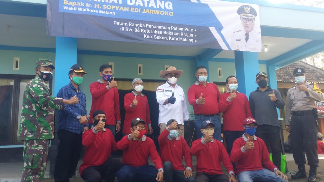 Pilar cakrawala~Malang, Wakil Walikota Malang Ir. H. Sofyan Edi Jarwoko memegang komitmen menghijaukan kota Malang Dengan Penanaman pohon pule, Kali ini Minggu 20 Juni 2021 wilayah RW 06 Kelurahan Bakalan Krajan kecamatan Sukun Dan wilayah RW 02 Kelurahan Madyopuro Kecamatan Kedung Kandang Kota Malang menjadi target untuk di hijaukan.