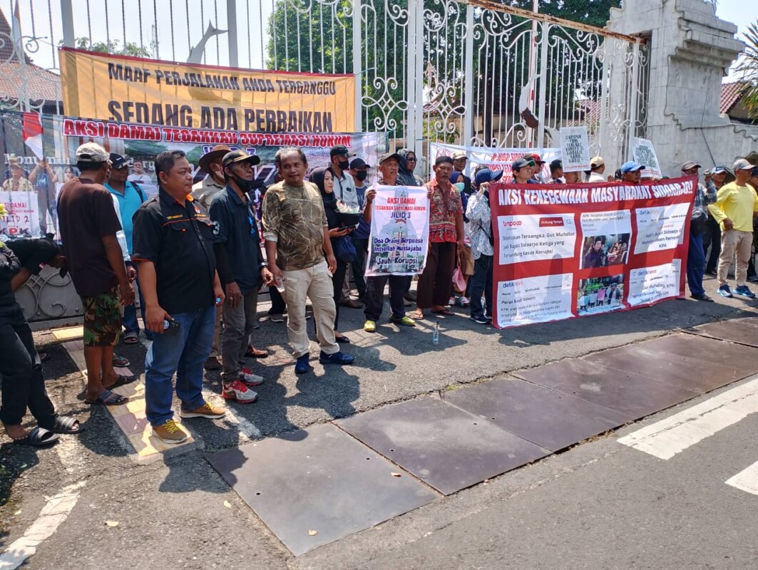 SIDOARJO DIGUNCANG SKANDAL KORUPSI: KOALISI MASYARAKAT SIDOARJO DAN GERAKAN MASYARAKAT BERSATU ANTI KORUPSI DEMO DI DEPAN PENDOPO KABUPATEN SIDOARJO