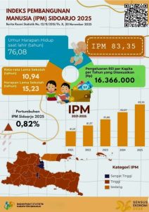“Angka 83,35 ini menempatkan Sidoarjo dalam kategori ‘Sangat Tinggi’. Ini adalah buah dari perbaikan di semua lini, terutama pada dimensi umur panjang dan hidup sehat di mana Umur Harapan Hidup saat lahir telah menyentuh 76,08 tahun, serta dimensi pengetahuan dengan Harapan Lama Sekolah mencapai 15,23 tahun,” ujar Isma’il.