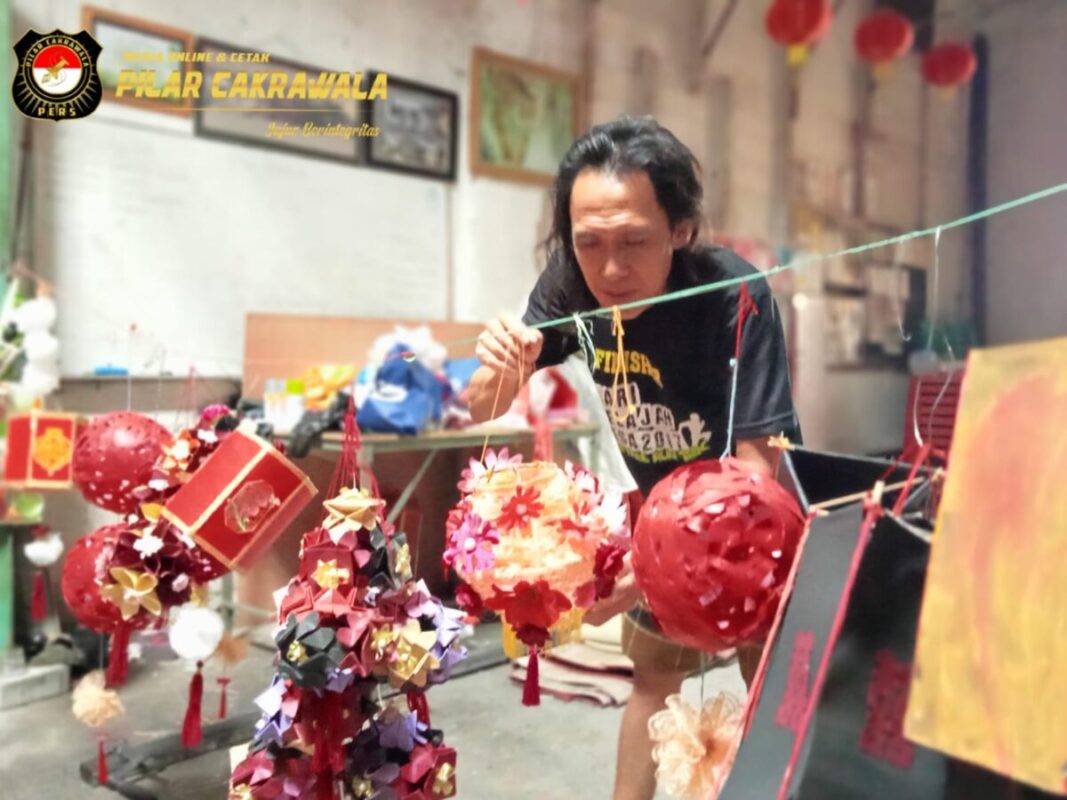 Pria yang akrab disapa Gepeng itu aktif mendampingi anak-anak membuat hiasan khas Tionghoa. Selain mengajarkan cara pembuatannya, dia juga memberikan ceramah terkait filosofi lampion kepada anak-anak.