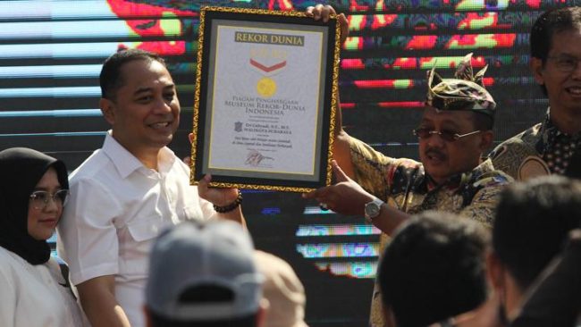 Untuk diketahui, penghargaan Rekor MURI ini diberikan langsung oleh Direktur MURI, Yusuf Ngadri kepada Walikota Surabaya, Eri Cahyadi.(BS/Rm)