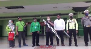 Penyerahan Bingkisan Kepada manajemen Yussar & Playgroun Bapak Ahmad Agung (Kaos hitam)