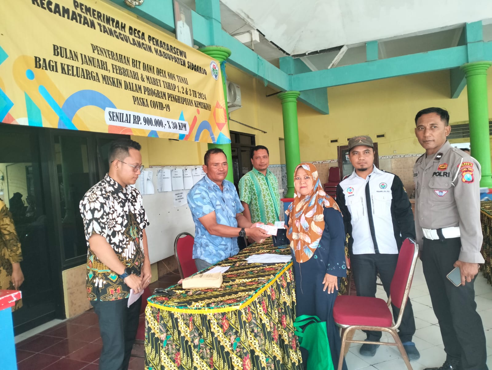 Sidoarjo~www.pilarcakrawala.news|Pemerintahan Desa Penatarsewu melaksanakan giat pembagian (Bantuan Langsung Tunai Dana Desa) BLT-DD Tahap pertama  (Januari, Febuari, Maret) kepada warga masyarakat kurang mampu sebanyak 30 KPM bertempat di Balai Desa Penatarsewu, Kamis 14/03/2023.