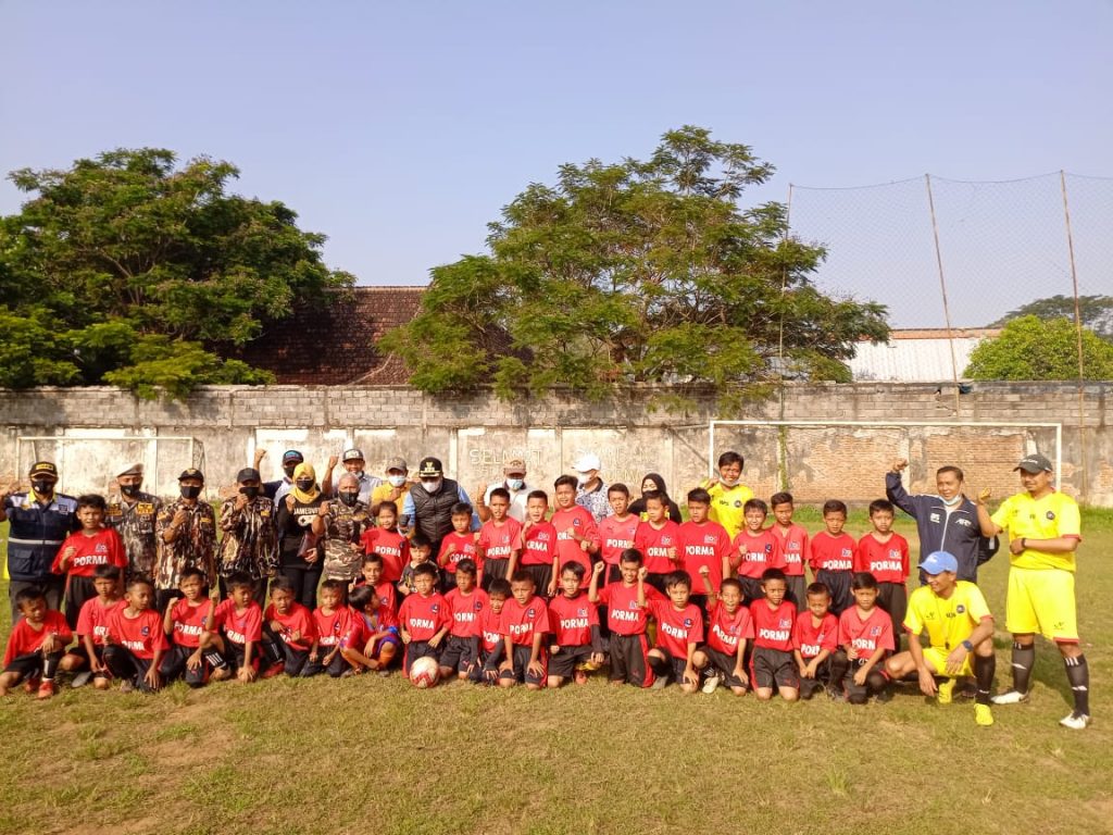 Pada Kesempatan ini pula Wakil wali kota Malang meninjau siswa binaan PORMA FC yang sedang melakukan latihan dan mengajak berfoto bersama. (Aspri)