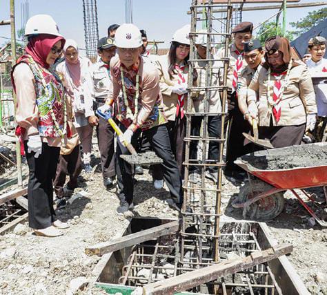 Surabaya~www.pilarcakrawala.news|Walikota Surabaya Eri Cahyadi dengan didampingi Wakil Walikota Surabaya Armuji yang sekaligus menjabat sebagai Ketua Kwartir Cabang (Kwarcab) Praja Muda Karana (Pramuka) Kota Surabaya, beserta Ketua Tim Penggerak (TP) PKK Surabaya Rini Indriyani meletakkan batu pertama pembangunan Gedung Kwartir Cabang (Kwarcab) Gerakan Pramuka Kota Surabaya di Kwarcab Kota Surabaya Jalan Karah Agung No 49, Minggu (21/5/2023).