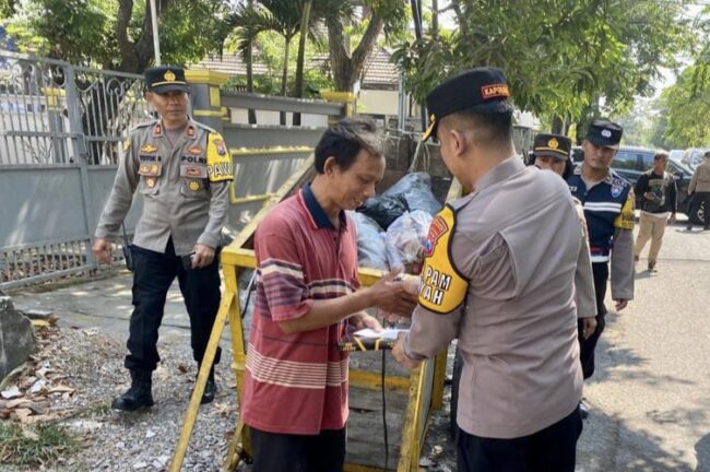 Kegiatan Peduli Presisi ini disambut dengan penuh sukacita dan rasa syukur dari kedua petugas kebersihan yang sedang menarik gerobak tersebut.(Bs)